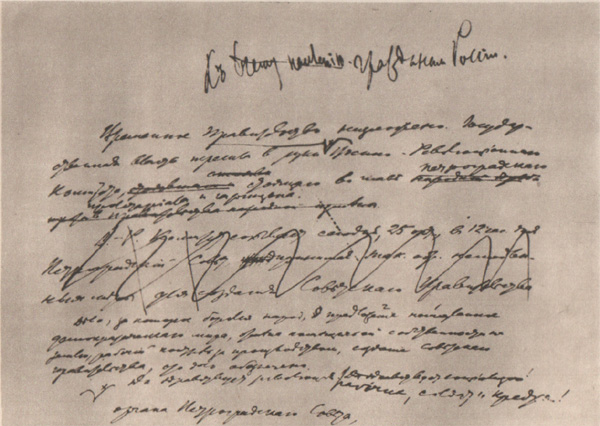 Rusiei!», scrisă de V. I. Lenin la 25 Octombrie |