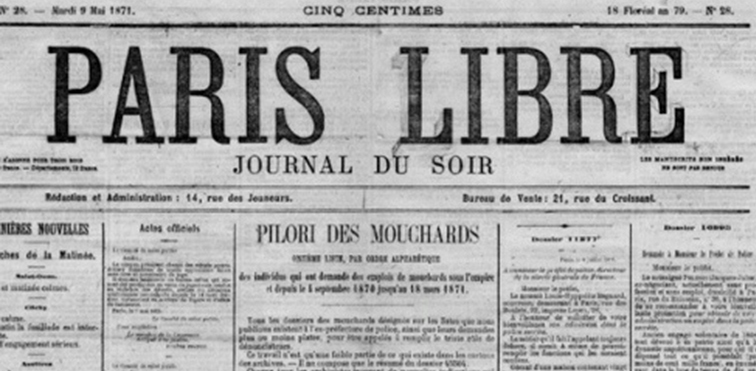 12 Nisan – 24 Mayıs 1871 tarihlerinde yayımlanan “Paris Libre” gazetesinin editörlüğünü (Marx’ın “büyük edebi değerden yoksun” olarak tanımladığı) Pierre Vésinier (1824-1902) yapmıştır. Vésinier, 1868’de atılana değin Birinci Enternasyonal’in Londra Fransız seksiyonu başkanıydı. Vésinier, siyasi faaliyetlerine hız kesmeden devam etti ve Ekim 1870’de 20. bölgede bir belediye binasını ele geçirmeye katılmaktan tutuklandı. Temize çıkarak 16 Nisan 1871’de tarihinde Garibaldi alayının bir üyesi olarak Komün’e seçildi ve birkaç dergiye katkı sundu. 8 Mayıs’ta “Le Journal Officiel” editörü oldu ve “Paris Libre”yi düzenledi. Komün’ün yenilgisinden sonra Londra’ya kaçtı ve ölümüne değin politik olarak aktif kaldı.